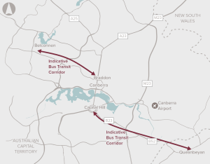 An integrated transport solution through developing bus transit corridors between Belconnen and Queanbeyan to central Canberra.