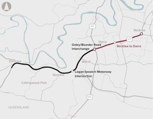 Improvements to road capacity along the Ipswich Motorway between Rocklea and Darra by providing additional lanes, upgrades of bridges and ramps and other provisions.